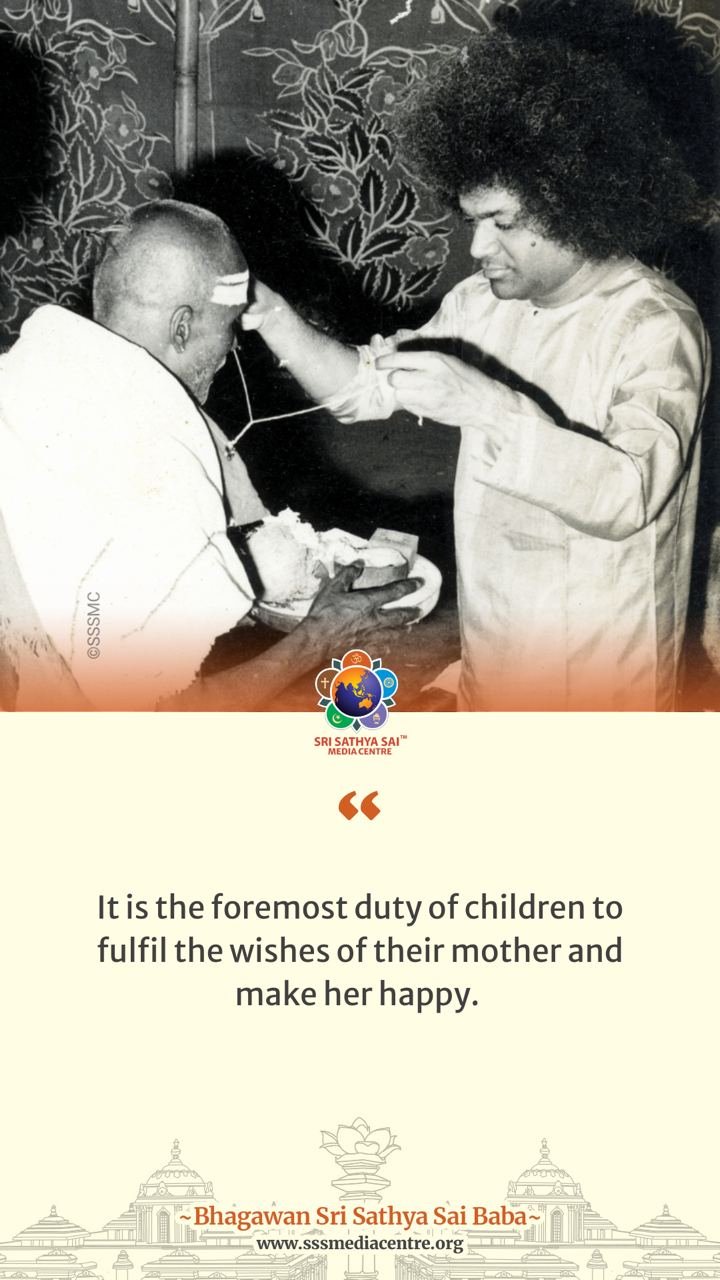 It is the foremost duty of children to fulfil the wishes of their mother and make her happy. – BABA