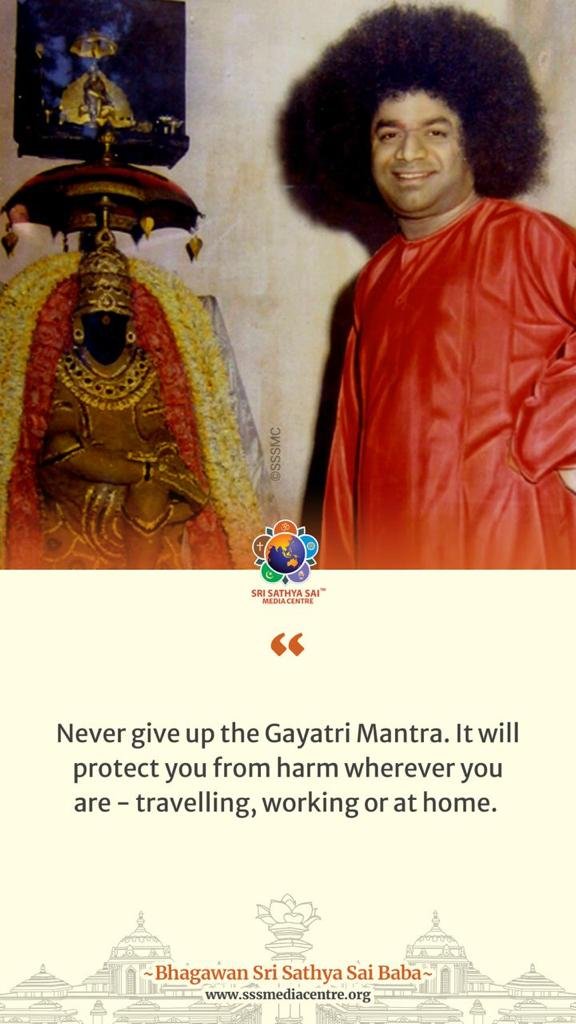 Never give up the Gayatri Mantra. It will protect you from harm wherever you are – travelling, working or at home. – BABA