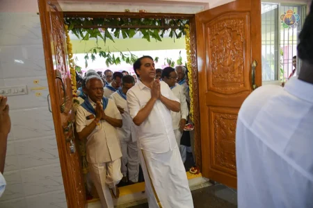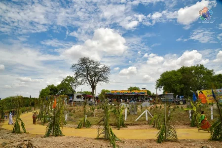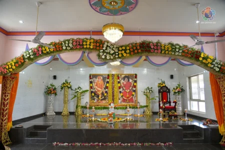Located amidst lush green fields with river Penna flowing adjacently, this Samithi is built over half an acre of land with valuable contributions by the villagers as an expression of their heartfelt love and gratitude to Swami.
