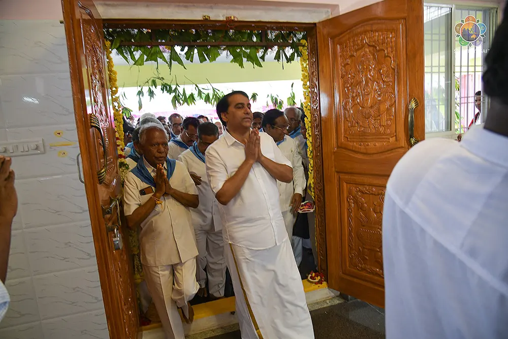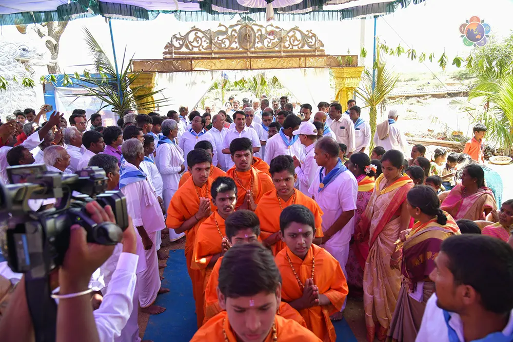 The honorable guests were welcomed in a traditional procession amidst Vedic chants and nadaswaram.