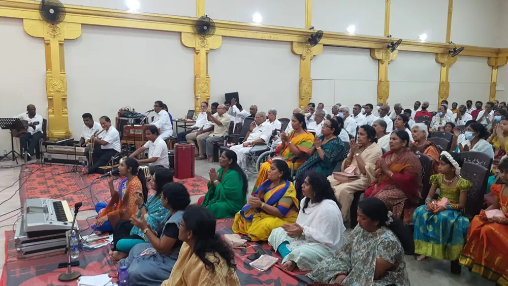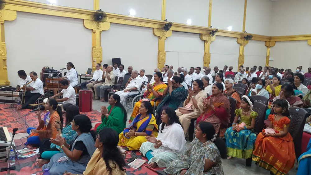 In addition to the birthday celebrations of Swami held on 23rd November, a special Pooja to commemorate Swami’s 97th birthday was held at the main hall of the Old Kathirasan Kevil, Bambalapitiya, Colombo, Sri Lanka on Saturday the 4th of December 2022. In spite of heavy rains over 100 participants gathered for the Pooja including representatives from all five regions of Sri Lanka, foreign donors, members from all thirty Sai Centres affiliated to Sri Sathya Sai Global Council, Putaparthy and other invitees.