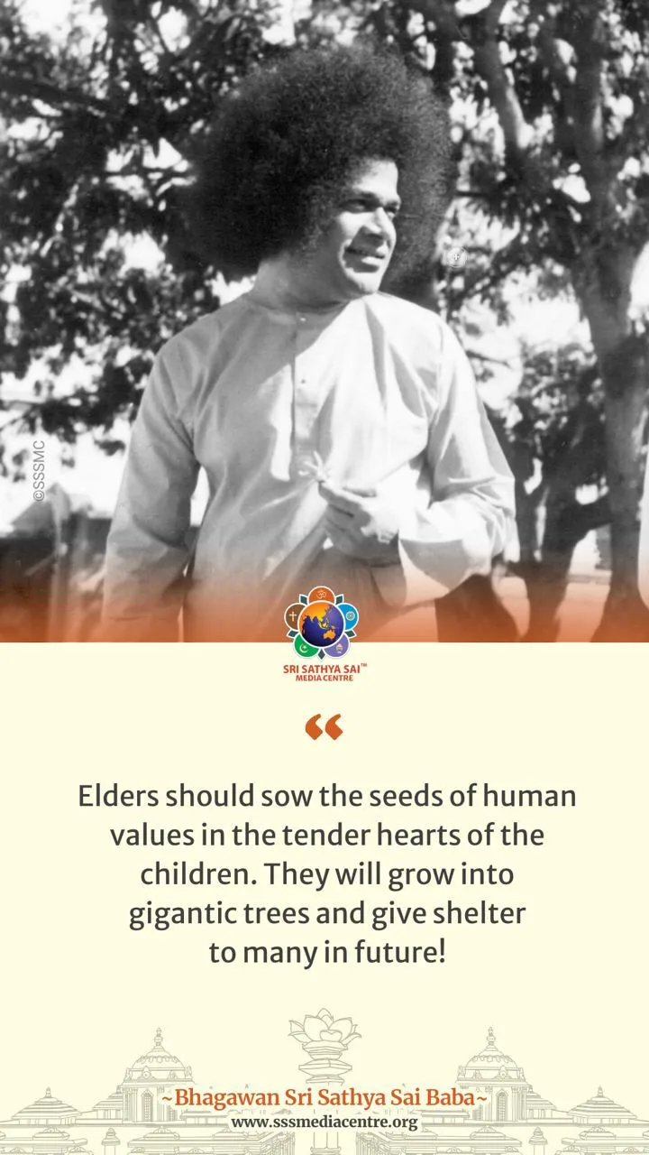 Elders should sow the seeds of human values in the tender hearts of the children. They will grow into gigantic trees and give shelter to many in future! – BABA