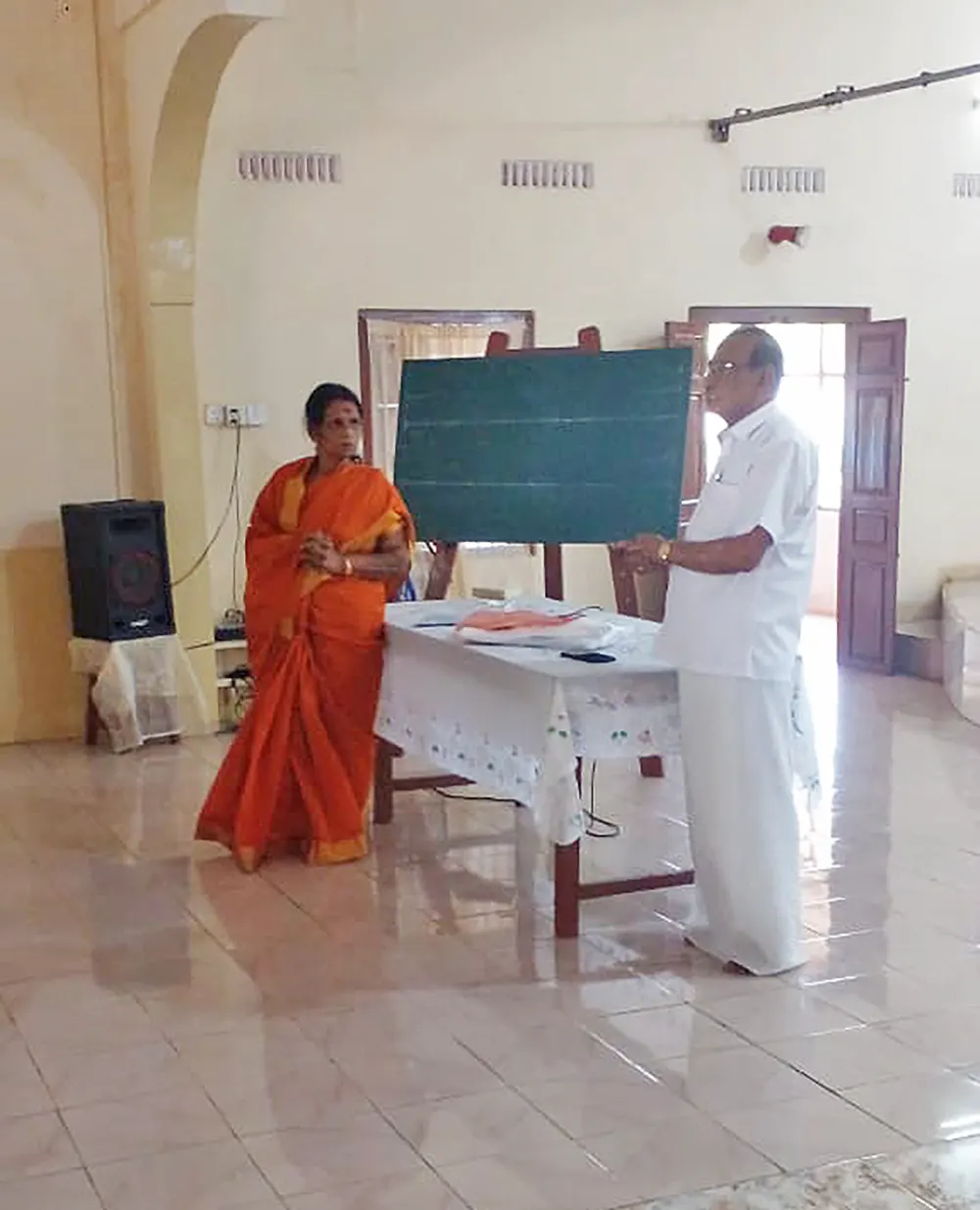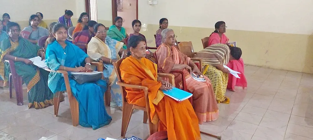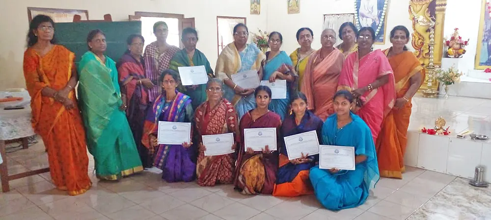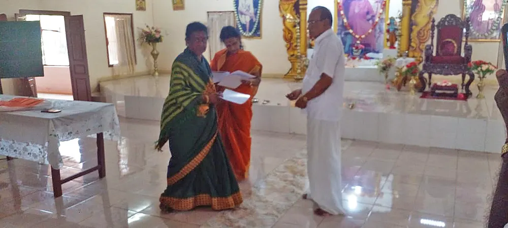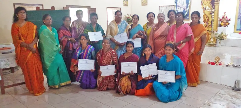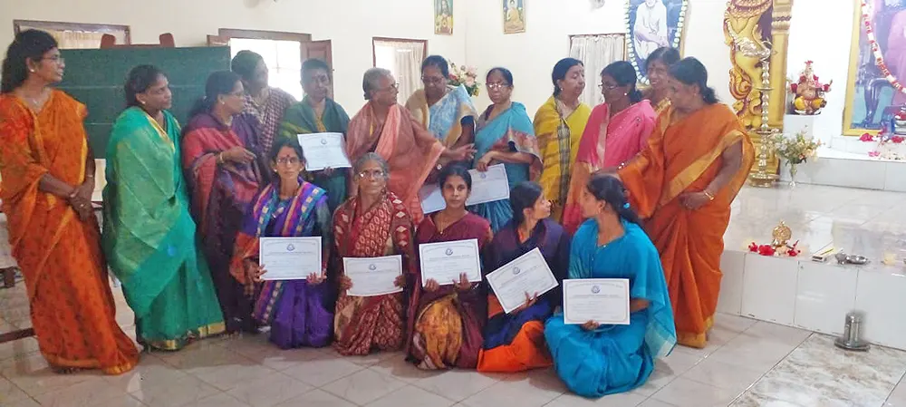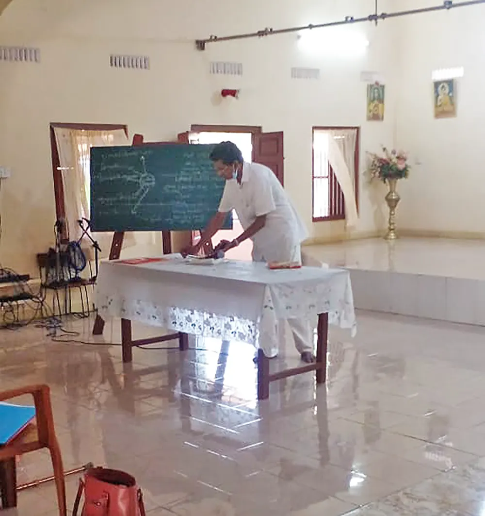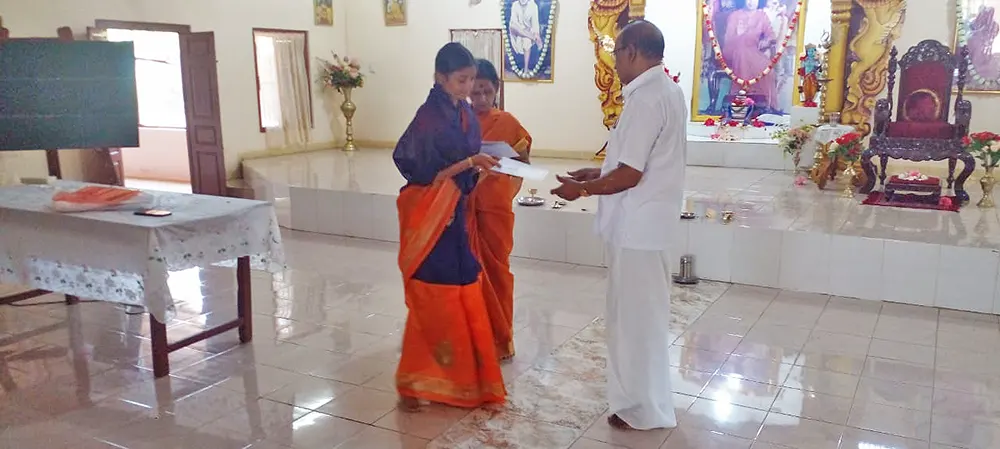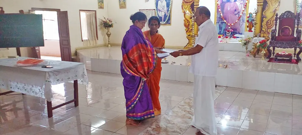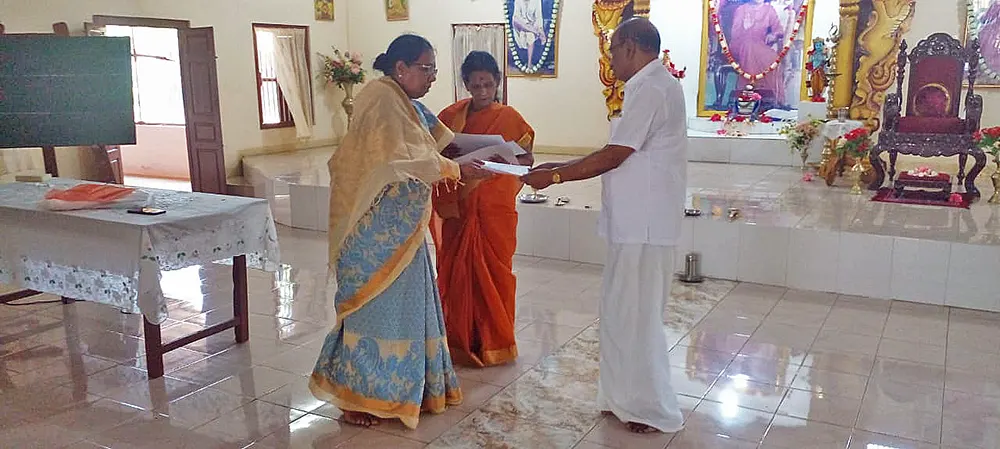 The training programme included veda practice, omkaram, slokas, prayers, jyothi meditation, bhaja govindam, assingment review and feedback and a question & answer session. Further a question & answer formular was also issued as teaching materials for group 1, group 2 & group 3. Also, CDs containing slokas and prayers were issued to the Teachers.
