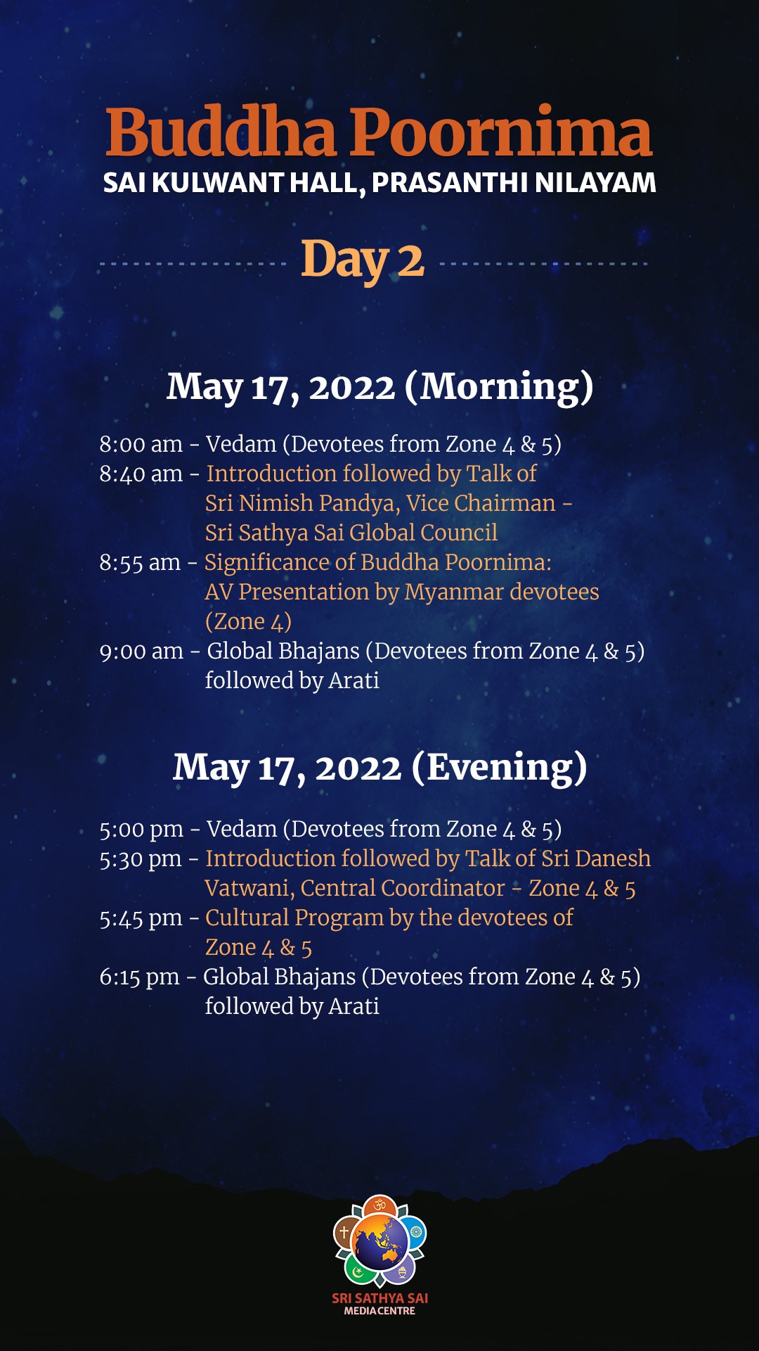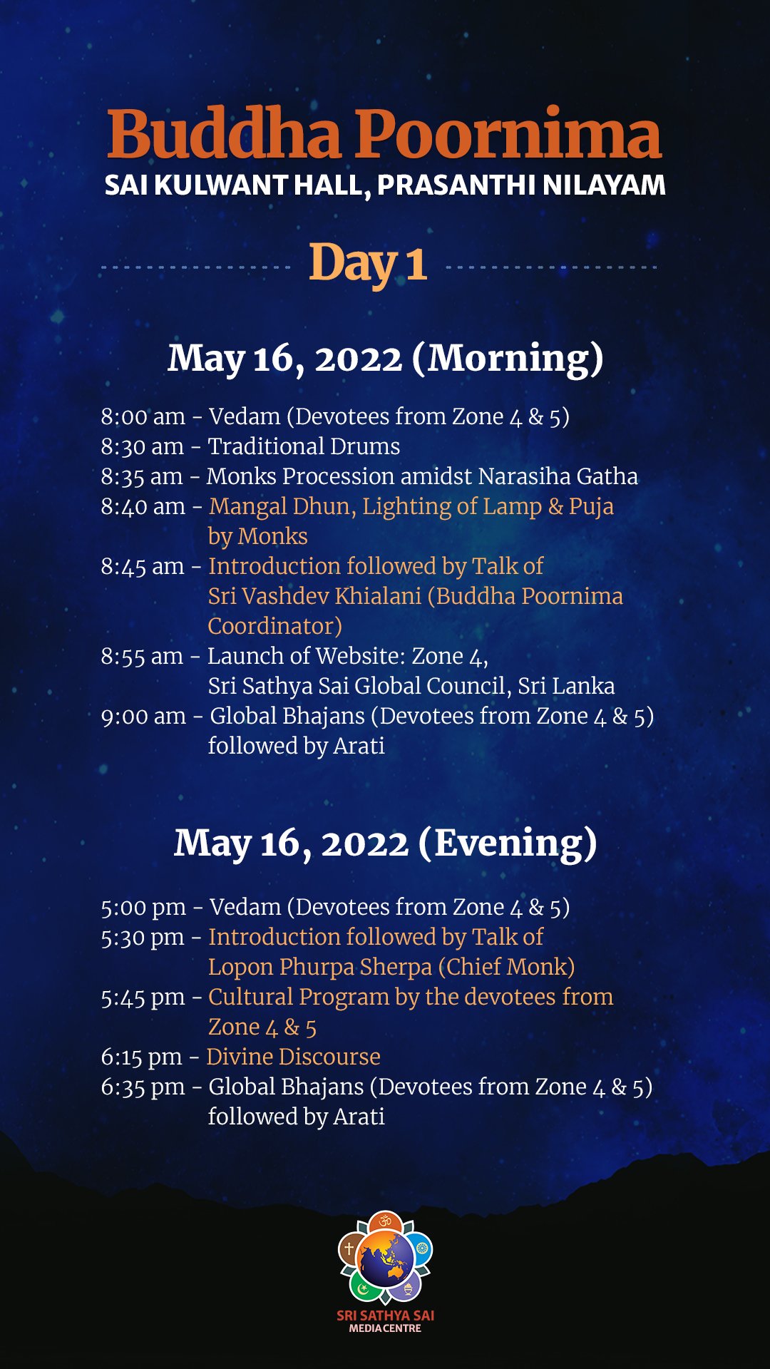 Buddha Poornima Celebrations | May 16 & 17, 2022 | Prasanthi Nilayam | Program Schedule