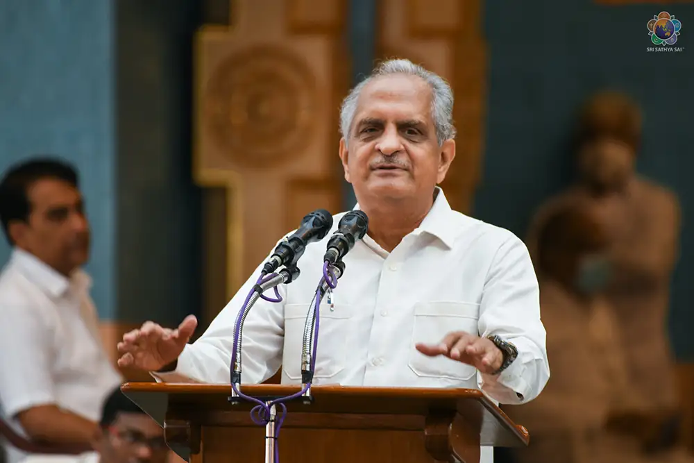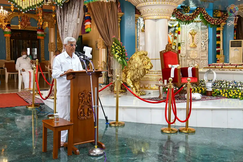 Sri Vashdev Khialani, the Buddha Poornima Co-ordinator introduced the guest speaker for the day, Sri Nimesh Pandya, Vice Chairman of Sri Sathya Sai Global Council who reminisced about earlier Buddha Poornima Celebrations in the immediate presence of Bhagawan Sri Sathya Sai Baba.
