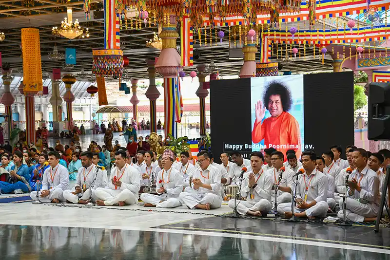 As part of ongoing Buddha Poornima Celebrations, the morning proceedings of Day 2 began with Vedam Chanting by the devotees from Zone 4 & Zone 5, Sri Sathya Sai Global Council.