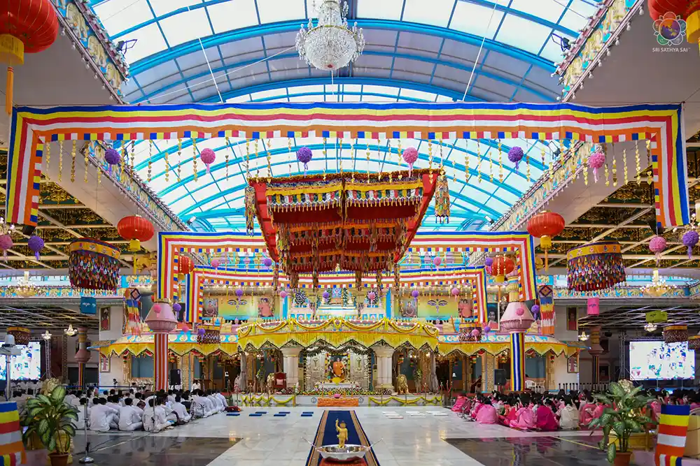With the Divine Blessings of Bhagawan Sri Sathya Sai Baba, the first overseas programe Post Covid-19 was conducted this morning in Sai Kulwant Hall. The devotees from Zone 4 and Zone 5, Sri Sathya Sai Global Council, have gathered in Prasanthi Nilayam to celebrate Buddha Poornima in the Divine Presence of Bhagawan.