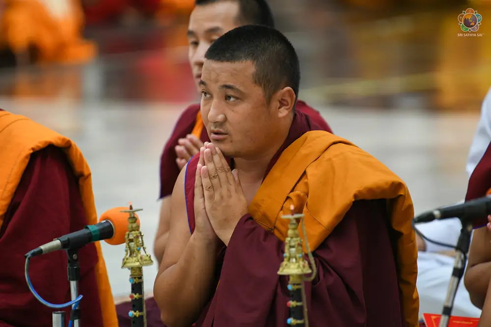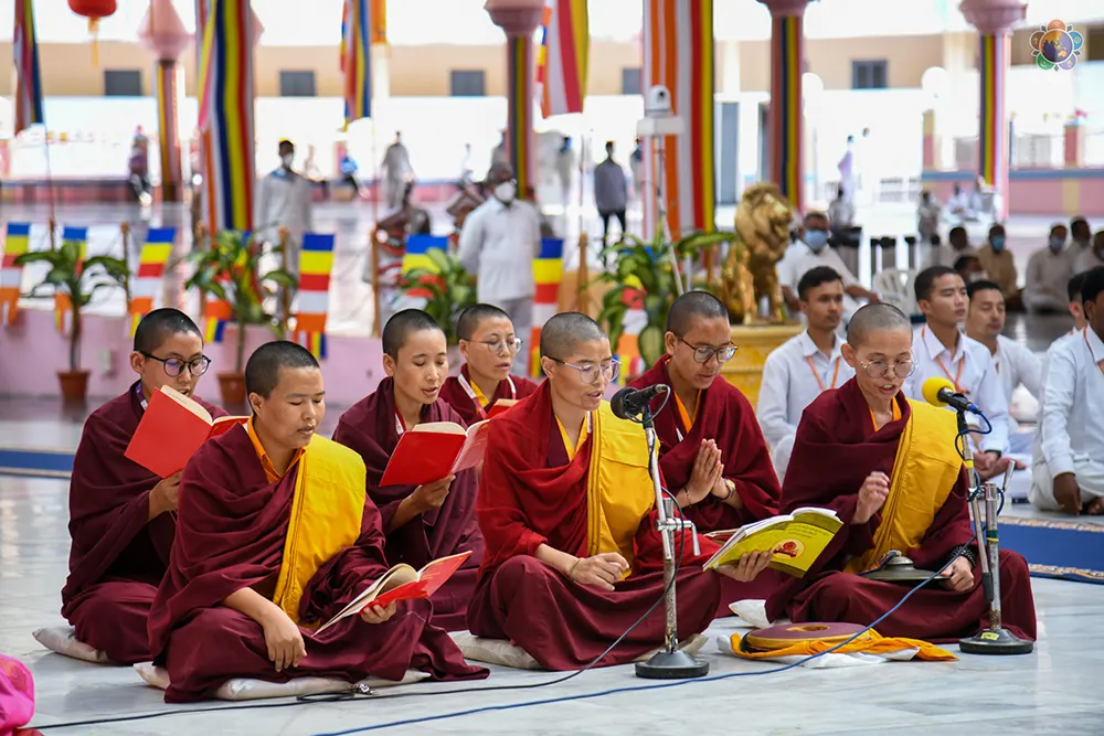 The monks then chanted the traditional Buddhist hymns and mantras praying for Global Peace and the Well-Being of all and thus concluded the morning proceedings by offering Mangala Arati to Bhagawan.