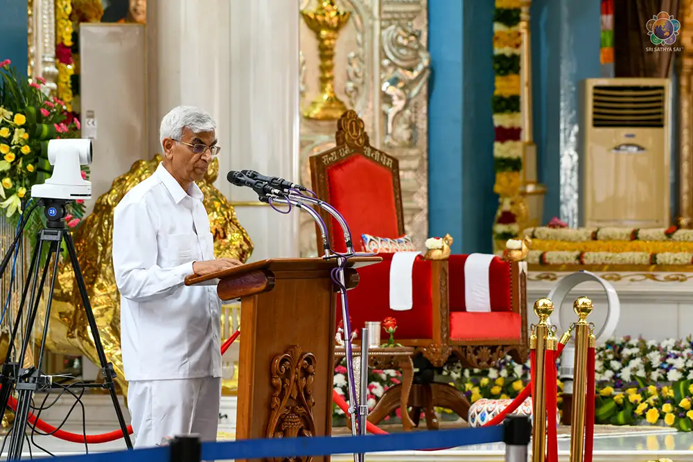 The Buddha Poornima Co-ordiantor, Sri Vashdev Khialani offered his heartfelt gratitude to Swami on behalf of all the overseas devotees gathered here for enabling them to travel from several countries and congregate at Prasanthi Nilayam.