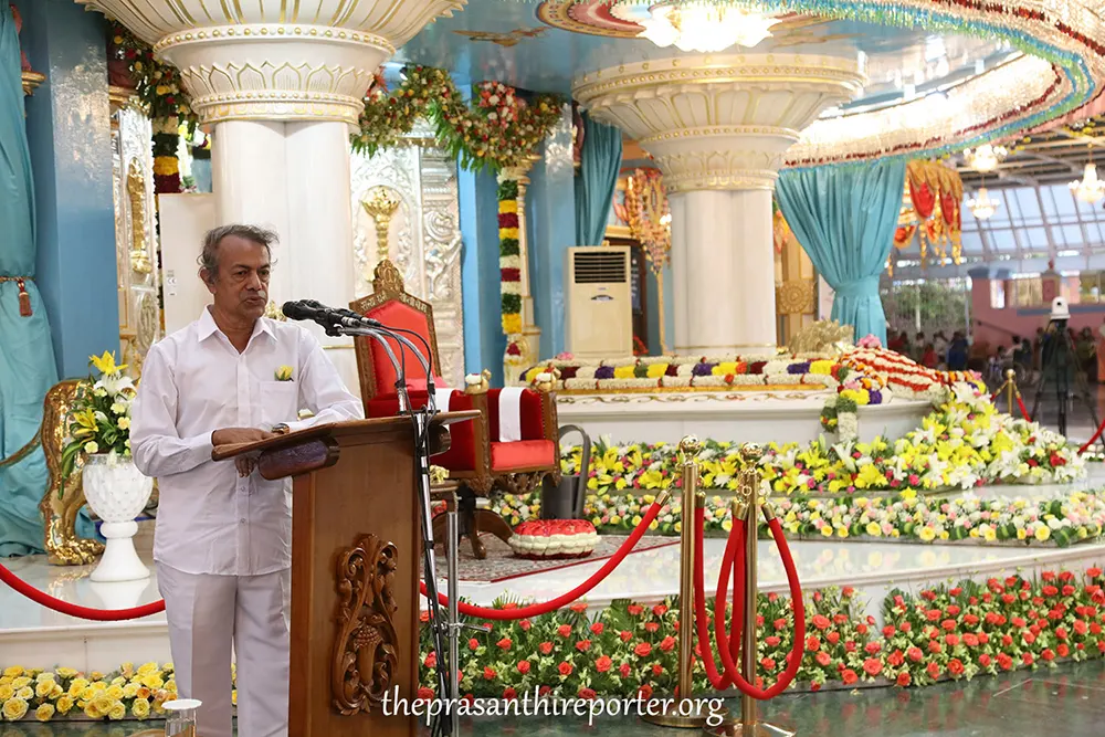 Speaking on the occasion, the guest speaker, Prof Sundanda Degamboda of the Sri Sathya Sai Global Council, Srilanka, spoke on the meaning of Buddha Purnima, which he said is the full moon day when Prince Siddhartha perfected his wisdom. Bhagawan Sri Sathya Sai has given us the potential weapons of Selfless Service and Love, which can be achieved through Namasmarana that in turn helps to sharpen one’s intellect, thus the significance of Buddha Purnima, said the speaker, enlightening the august assembly on the supreme importance of the special occasion.