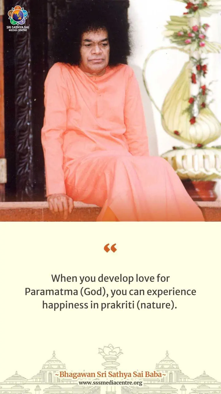 Contentment in the mind is not easily secured. As soon as one desire is satisfied, another crops up. There is no limit to desires. Even aspiration for moksha (liberation) is a desire. As long as desires remain, man is bound to the mundane. Moksha means the disappearance of moha (attachment). Liberation signifies freedom from fleeting pleasures. What should we aspire for? There is Divinity that is permanent and unchanging. That is known as Prema (Divine Love). This Prema is not related to the physical. Men experience love in its worldly form as affection or attachment. All love in human relationships today is not Prema, it is attachment. It is inherently of a passing nature – interludes in the human journey. All attachment arises at one stage (between mother and son, husband and wife, etc), and drops away at another. As against these transient attachments, the love of God (Prema) is something else! God is eternal – existing before man’s birth and continuing after his death, without a beginning or an end. True love means Love for God!