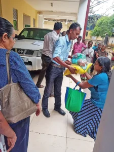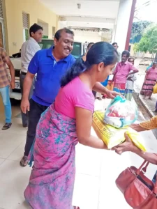 The Southern region Sri Sathya Sai Overseas Organisation (SSSOO) in Galle Sri Lanka conducted the donation of 100 dry ration packs containing 10kg rice, 02kg Dhal, 02kg Flour, 01 pckt Salt, 100g Tea, 100g Chilli and 100g Curry Powder, on Saturday the 29th April, 2023. Distribution took place at the Divisional Secretariat of Ambalanthota. The SSSOO Sri Lanka is very grateful to all officers of the Divisional Secretariat and members of the Galle Samithi and various devotees who helped the SSSOO.