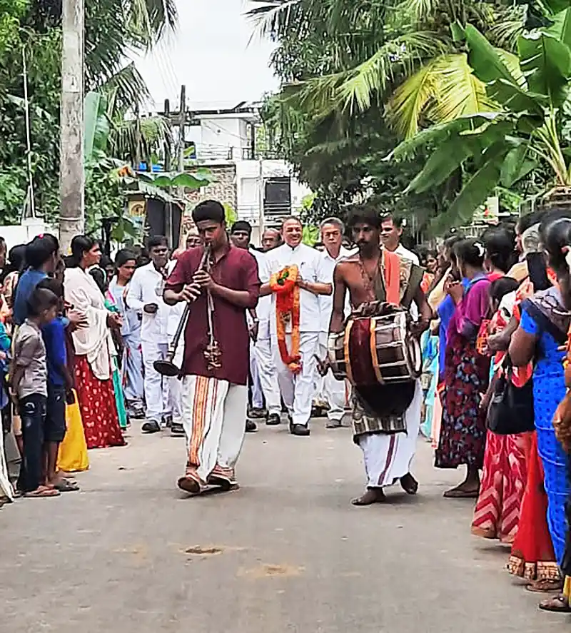 The photos show some events in Weeramunai of the Eastern Region. The main event was the Bhajan Hall where inaugural Bhajans were held immediately after the cutting of the ribbon jointly by Sri Vedanarayan and Professor Sunanda Degamboda. The Eastern Region’s Coordinator for the SSSOO had organised the event and all those who attended the event (about 700 ) were provided meals.