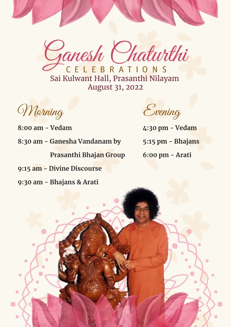 Ganesh Chaturthi | Aug 31, 2022 | Program Schedule | Prasanthi Nilayam