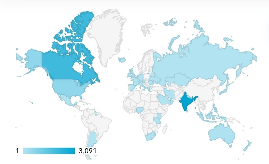India and Canada topping charts with highest Sessions : Gayathri Mantra in Swami’s Voice Radio, Sai Gayathri Mantra Radio, Vedic Chants Listenership Sessions Demographics.