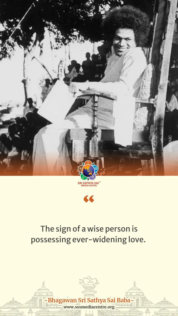 ප්‍රඥාවන්ත පුද්ගලයාගේ ලක්ෂණය වන්නේ නිතිපතා වර්ධනය වන ප්‍රේමයයි. ස්වාමි.