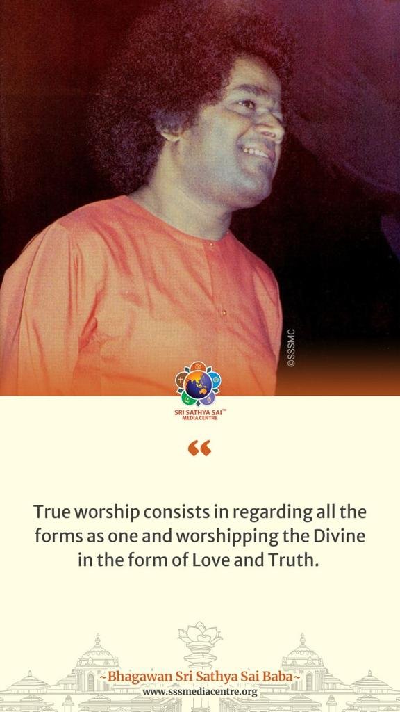 True worship consists in regarding all the forms as one and worshipping the Divine in the form of Love and Truth. – BABA