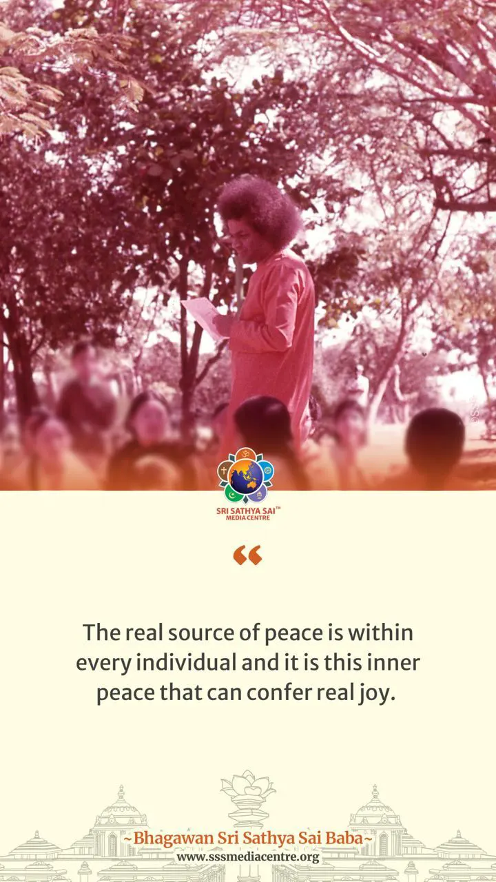 The real source of peace is within every individual and it is this inner peace that can confer real joy. тАУ BABA