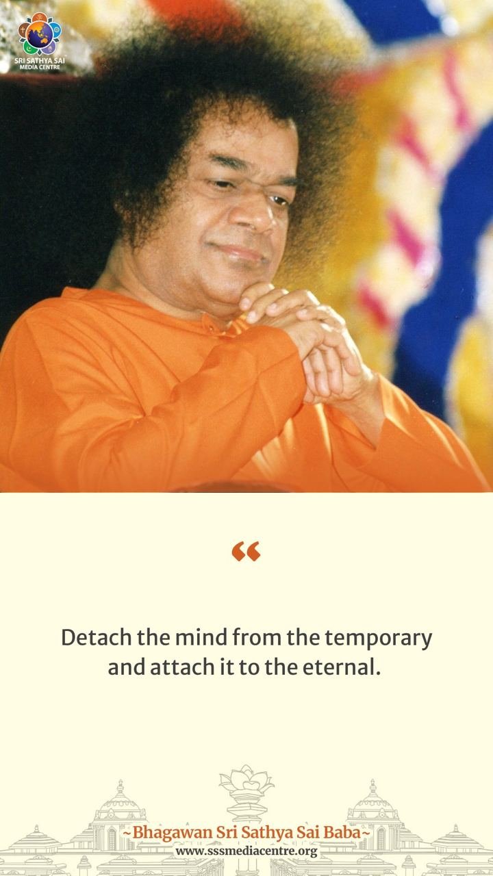 The mind, as Arjuna complained, hops from belief to doubt, from one conclusion to its negation and it causes turmoil and confusion. But, there is one method by which it can be conquered. The black bee can bore a hole in the hardest wood. But, when dusk intervenes while it is sipping the nectar from the lotus flower and, as a result, when the open petals close in on the bee, it finds itself imprisoned, with no hope of escape. It does not know how to deal with softness! So too, the mind can play its tricks and jump wantonly in any arena; but when placed on the lotus feet of the Lord, it becomes inactive and harmless. In order to offer the mind entirely to the Lord, deep detachment from worldly desires is needed. Superficial devotion or shallow steadfastness cannot succeed. To fell the hard sandalwood tree, a heavy axe of steel is needed.