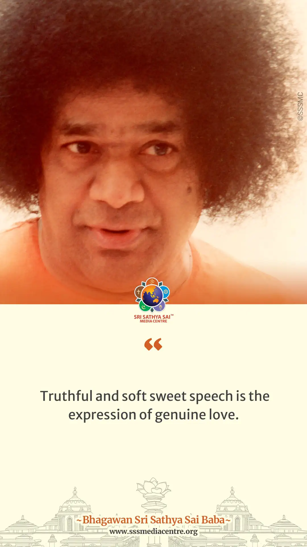 Love is vital. Love is divine. To render an act fit to be offered to God and pure enough to win His grace, it must manifest love. The brighter the manifestation, the nearer you are to God. Love is not affected or modified by considerations of caste, creed, or religion; it cannot be tarnished by envy, malice or hate. Preserve Love from being poisoned by these evils; endeavour to cultivate hatred-less, distinction-free feelings. The root of all religions, the substance of all scriptures, the rendezvous of all roads, the inspiration of all individuals is the principle of love. It is the firmest foundation for man’s mission in Life. It is the light that ensures world peace and world prosperity. Fill every word of yours with love, fill every act of yours with love. The word that emerges from your tongue shall not stab like a knife, wound like arrows, or hit like a hammer. It must be a foundation of sweet nectar, a counsel of wisdom, a soft path of blossoms; it must shower peace and joy.
