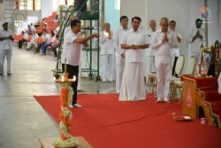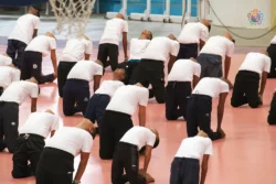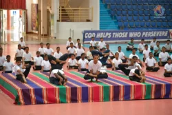 On December 11, 2014, the United Nations General Assembly declared 21 June International Yoga Day. Ever since, the day has been observed with much enthusiasm in Bhagawan’s educational institutions. Around 400 students from the Sri Sathya Sai Higher Secondary School and the Smt Easwaramma High School at Prasanthi Nilayam put up a brilliant performance of asanas and formations this morning at the Indoor Stadium as their offering to Swami. Even though the academic year 2023-24 commenced just a couple of days ago, with minimal practice the students made a commendable offering along with the teachers and yoga instructors.