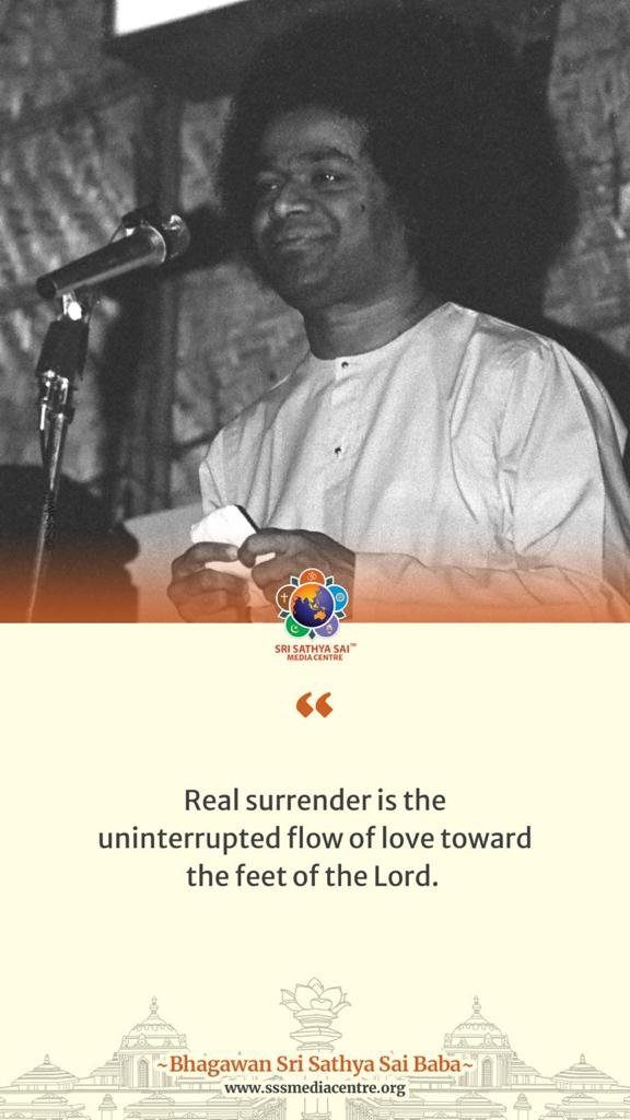 Real surrender is the uninterrupted flow of love toward the feet of the Lord. – BABA