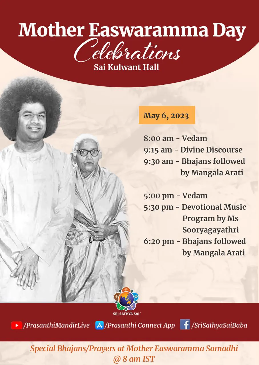 Sai News-ForeignSai News-Sri Lanka Mother Easwaramma Day Celebrations -Program Schedule -May 06, 2023 by sssgc-srilanka May 4, 2023 written by sssgc-srilanka May 4, 2023 0 comments 940 program schedule of Mother Easwaramma Day Celebrations at Sai Kulwant Hall for this year 2023. Share 0 FacebookTwitterPinterestLinkedinWhatsappTelegramSkypeViberEmail sssgc-srilanka previous post What are the key obstacles for us to live in love and peace? next post What is the essence of Lord Buddha’s teachings Related Posts Narayana Seva Brings Relief to 250 Flood-Affected Families in Northern... February 22, 2025 arayana Seva in Ampara: Providing Relief to 250 Flood-Affected Families... February 22, 2025 Celebrating Bhagawan Sri Sathya Sai Baba’s 99th Advent Year in... December 4, 2024 5 Successful Cataract Surgeries in Hambantota: A Brighter Future Ahead August 31, 2024 Connect with us on Instagram August 27, 2024 Sri Sathya Sai Divya Netra: 48 Cataract Surgeries Completed in... August 15, 2024