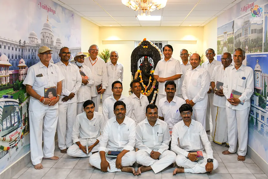 The Trustees of the Sri Sathya Sai Central Trust along with the staff of the Engineering Department offered gratitude to Swami, on the occasion of National Engineers’ day.