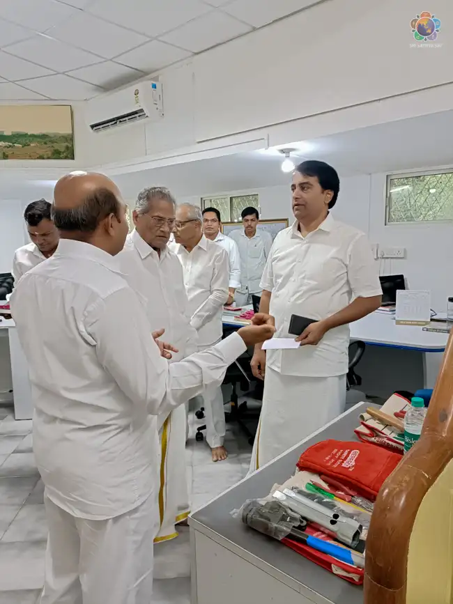 As part of the Engineers’ Day gathering here, the Chairman of Sri Sathya Sai Global Council & Member Trustee, SSSCT, Sri K Chakravarthi & the Managing Trustee, SSSCT, Sri RJ Rathnakar interacted with the staff of the Engineering Department, expressing appreciation and to reviewing the works taken up during the last few years. The works to be taken up in the run-up to the Centenary celebrations were also discussed.