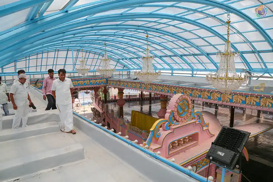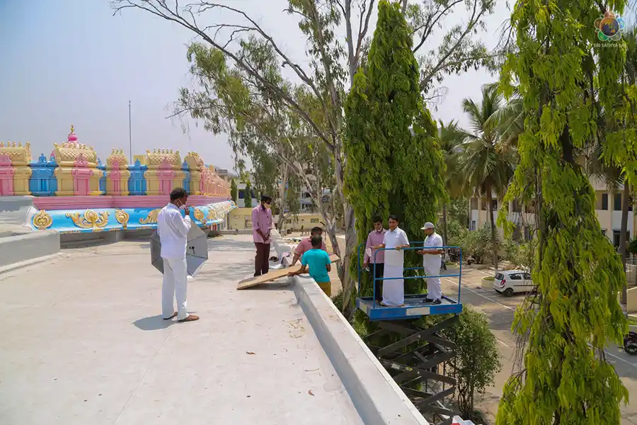 The works the department has been actively involved in include the construction of the Convention Centre, Solar power plants, lifts for the blocks in the Ashram, renovation of rooms, provision of hot water for pilgrims and students, Sai Charan (facility for elderly), replacement of asbestos at various buildings, construction of the crematorium, renovation of the community hall at Brahmanapalli, black topping of roads, new roof for the Poorna Chandra auditorium, replacing of poly-carbonate sheet and water proofing of Sai Kulwant Hall, renovation at Swami’s parent’s Samadhi, installation of fire protection systems, augmentation of street lights and providing inverter bulbs in common areas, Anganwadis at Kerala, digital museum at Brindavan and Drinking water plants at Odisha.