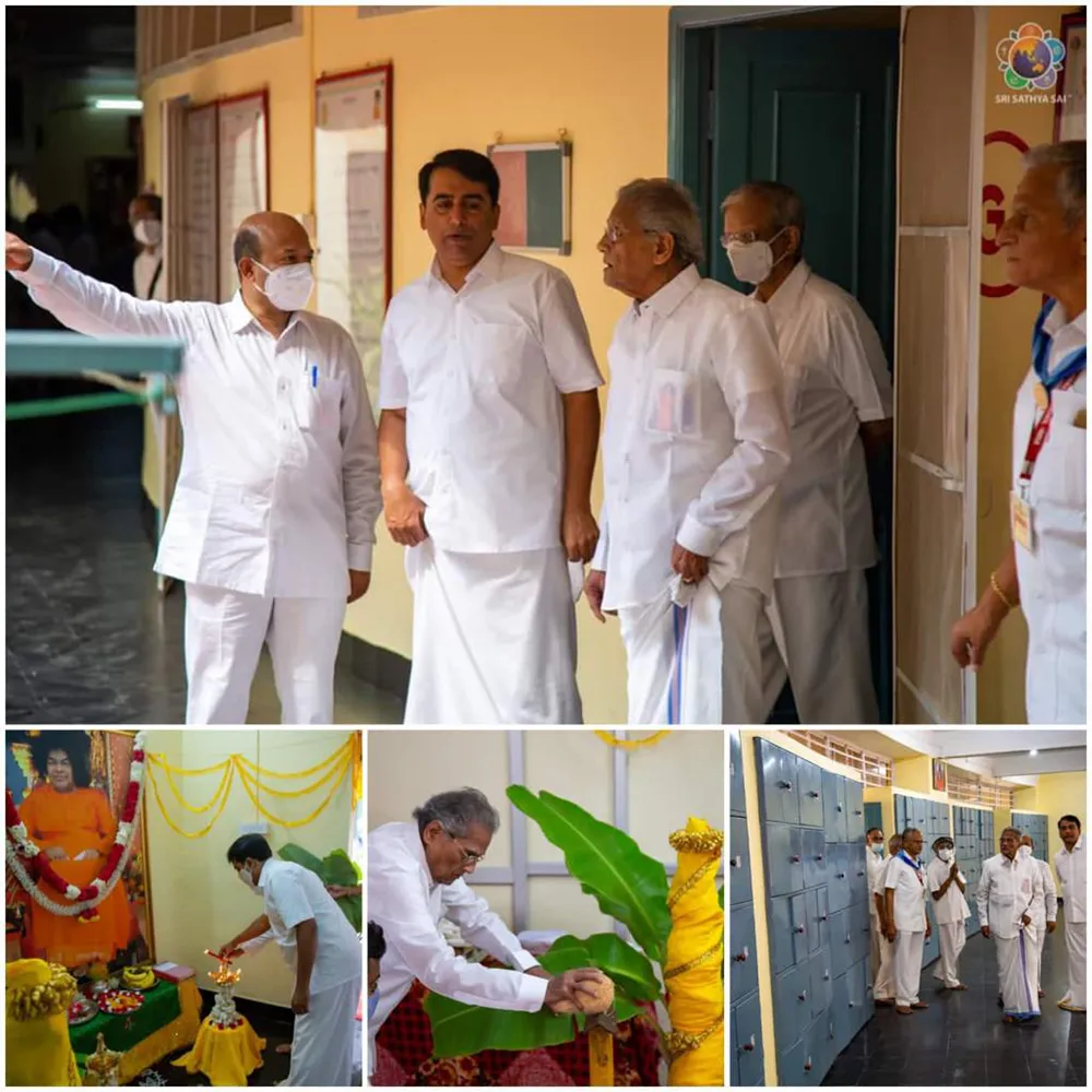 With the Divine Blessings of Bhagawan Sri Sathya Sai Baba, the refurbished ladies sevadal building in front of Gayatri Mandir inside Prasanthi Nilayam, was opened by Sri K Chakravarthi (Chairman of Sri Sathya Sai Global Council) and Sri RJ Rathnakar (Managing Trustee of Sri Sathya Sai Central Trust) amidst the presence of National Seva Co-ordinators and Elders on this Holy Thursday Morning.