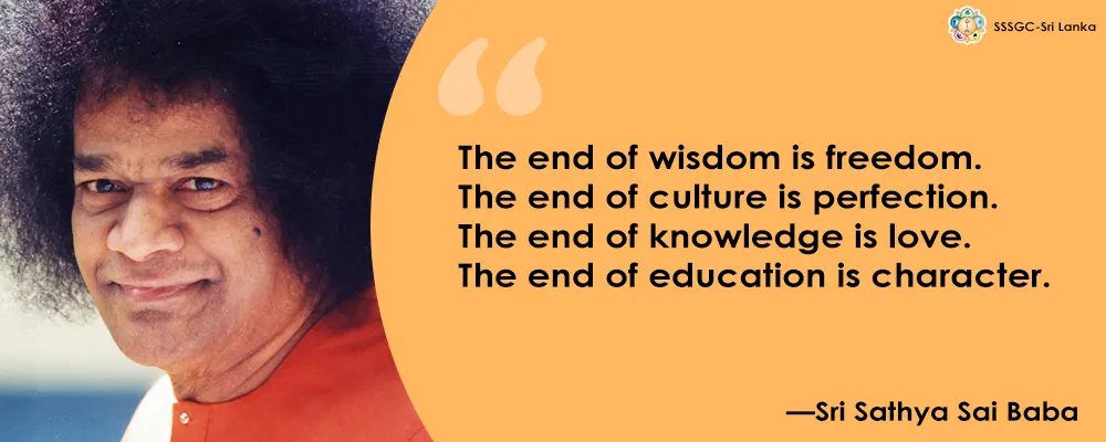 The end of wisdom is freedom. The end of culture is perfection. The end of knowledge is love. The end of education is character by sssgc-srilanka May 15, 2022 0 FacebookTwitterPinterestLinkedinWhatsappTelegramSkypeViberEmail