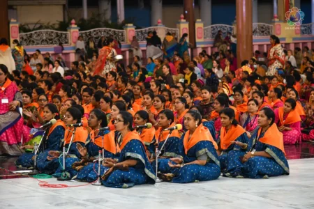 The devotees offered a devotional musical program entitled “Sri Sathya Sai Swara Madhuri”.