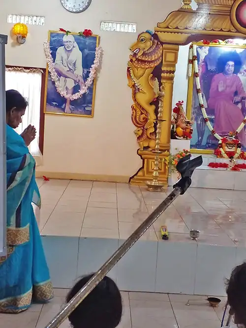 We all were blessed by swami while performing the aarathi by falling down two flowers from Shiirdi Baba’s and Sathya Sai Baba’s pictures.