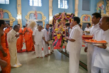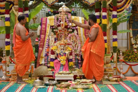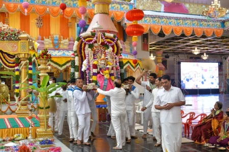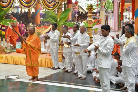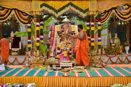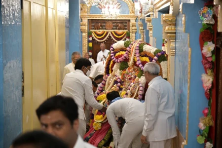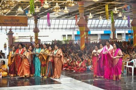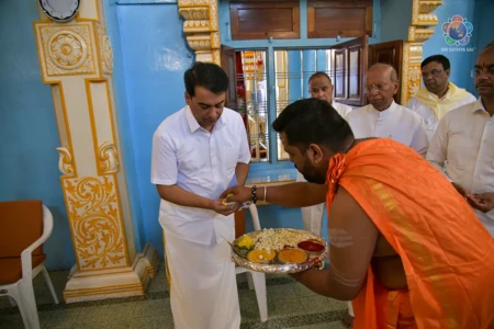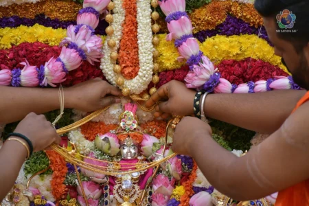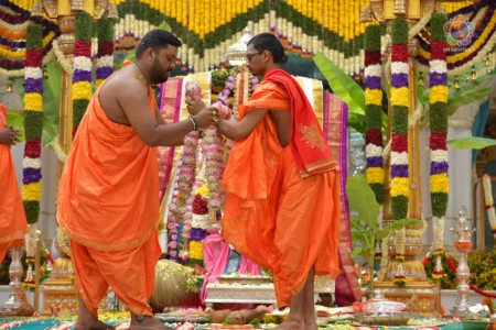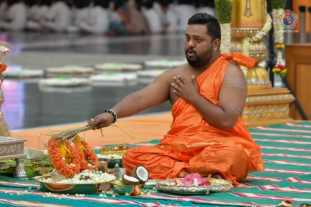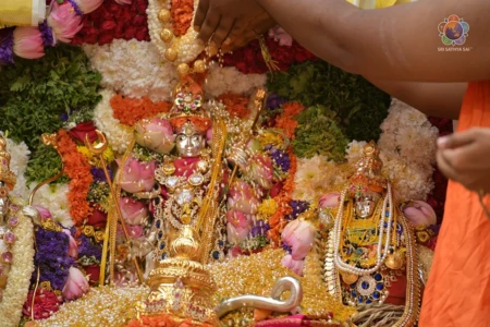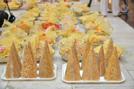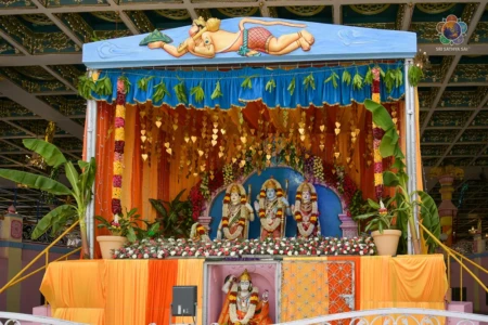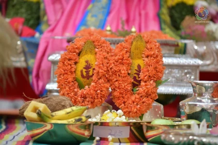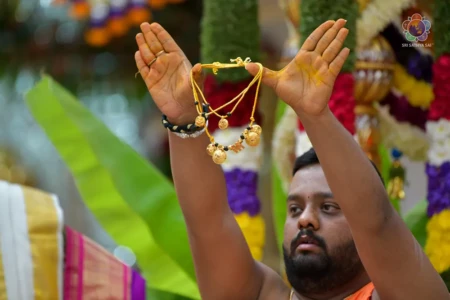 With the Divine Blessings of Bhagawan Sri Sathya Sai Baba, the traditional & sacred wedding ceremony – ‘Sita Rama Kalyanam’ was conducted successfully this morning in Sai Kulwant Hall as part of Sri Rama Navami Celebrations.