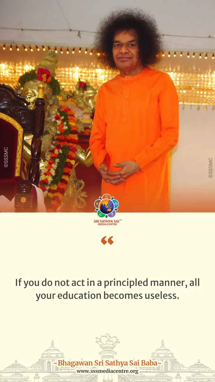 Next, worship without sacrifice. Yes, you are all praying. But it is prayer without sacrifice. Sacrifice alone grants bliss in worship. Politics without principles and science without human values are on the increase. If science had principles, how would bombs and other means of unrest come about? Human values have declined in science.