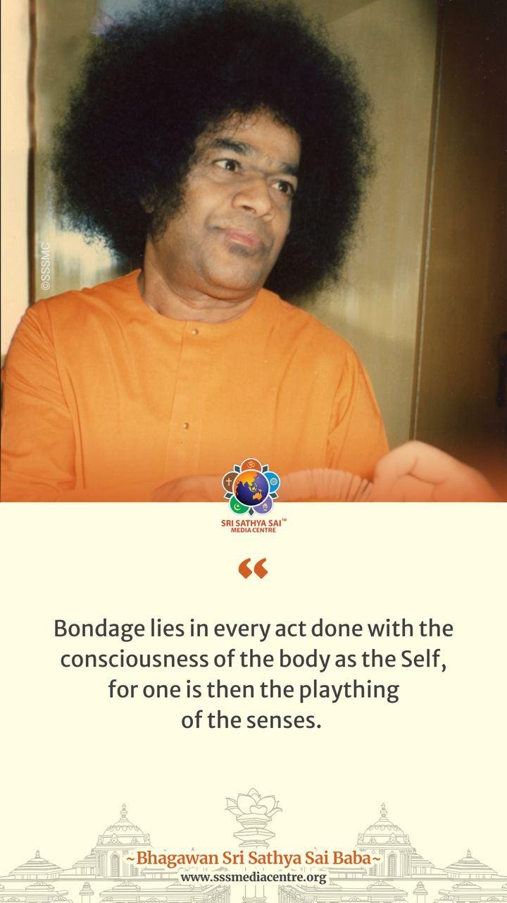 Bondage lies in every act done with the consciousness of the body as the Self, for one is then the plaything of the senses. – BABA