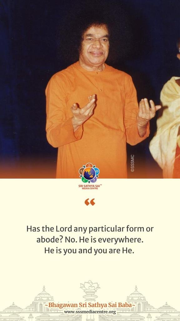 Has the Lord any particular form or abode? No. He is everywhere. He is you and you are He. – BABA