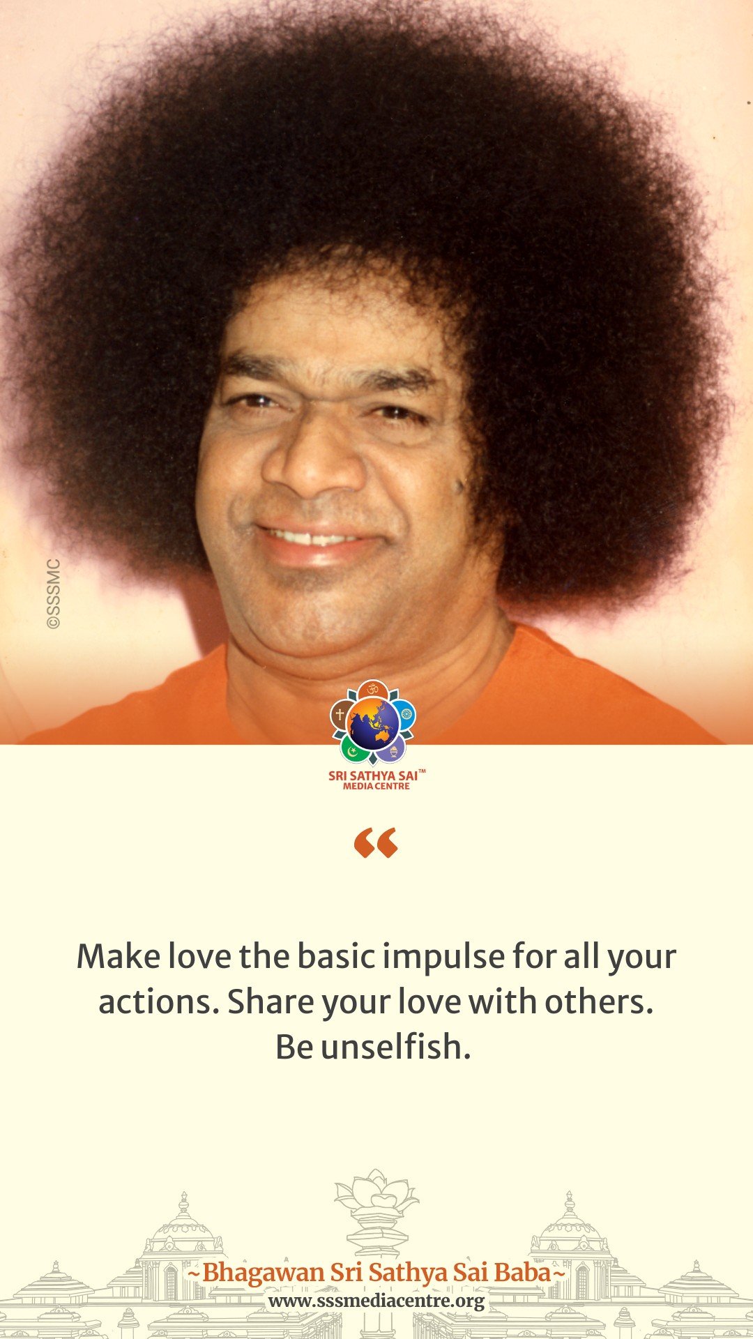 Make love the basic impulse for all your actions. Share your love with others. Be unselfish. – BABA