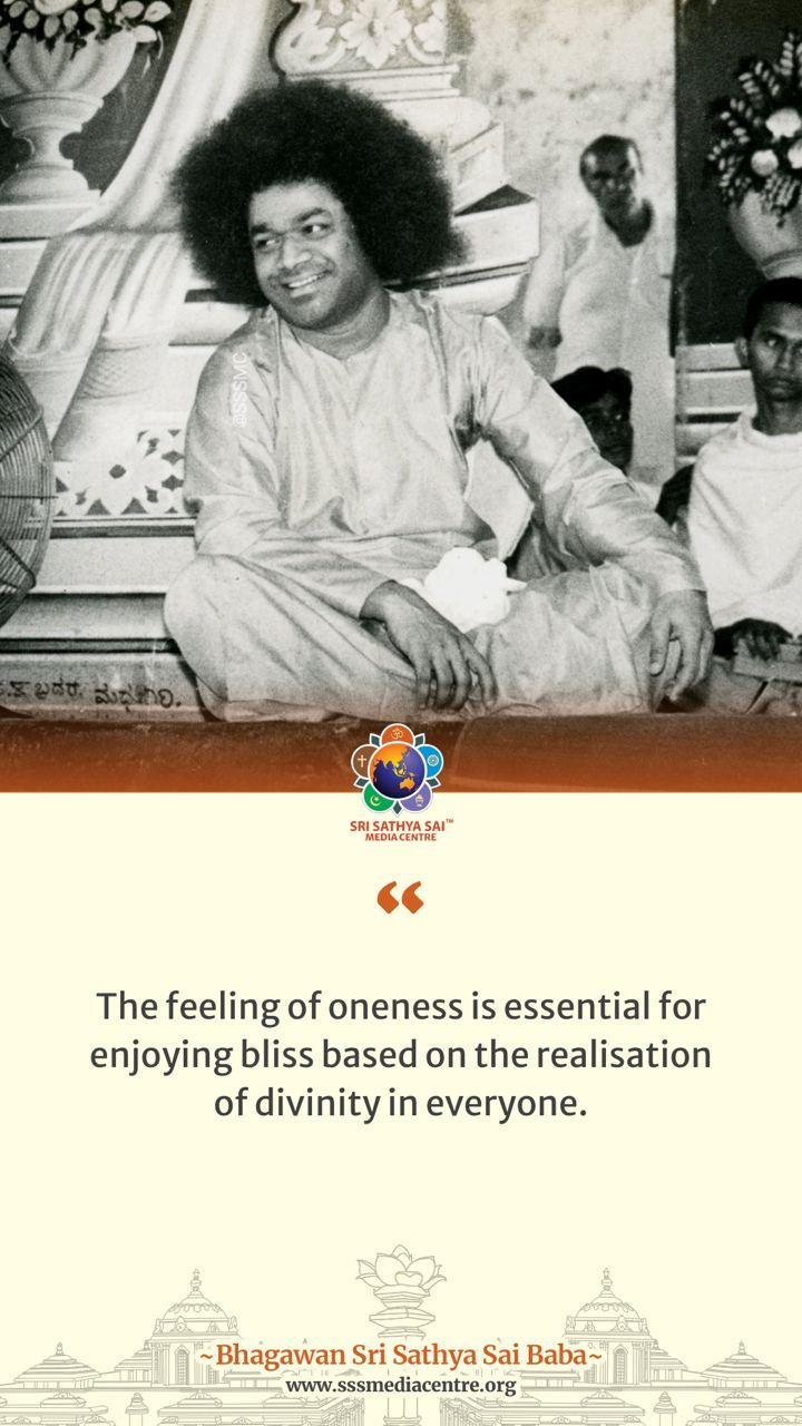 The feeling of oneness is essential for enjoying bliss based on the realisation of divinity in everyone. – BABA
