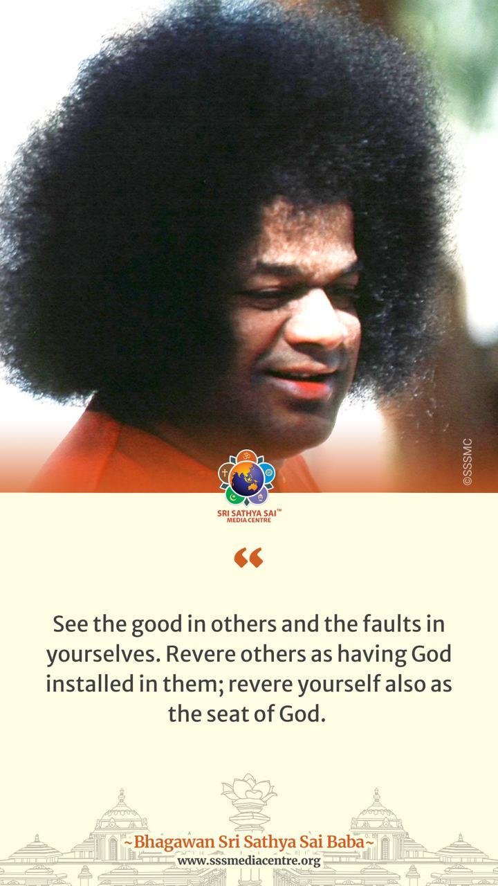See the good in others and the faults in yourselves. Revere others as having God installed in them; revere yourself also as the seat of God.┬а – BABA.
