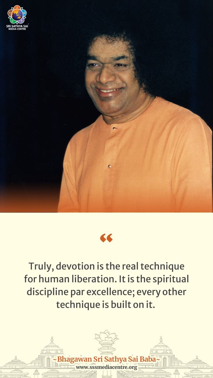 What does the expression “to know God” mean? It means “to love God”. Knowledge without devotion produces hatred; such knowledge leads to misused power; it is not knowledge worth the name, instead it is ignorance, mistaken for its opposite. It is only through devotion that wisdom becomes established and deep-rooted. What is the sign of a wise person (Jnani)? It is love, the possession of ever-widening love. When devotion, or in other words, love toward the Lord, dawns, ignorance will vanish step by step. Devotion and hatred cannot coexist; they are contradictory. Devotion and love, however, are of the same nature. The worldly person is infected with love only toward material objects, but the same love, when it assumes the form of devotion or love of God, leads one on to the realisation of the Godhead itself.