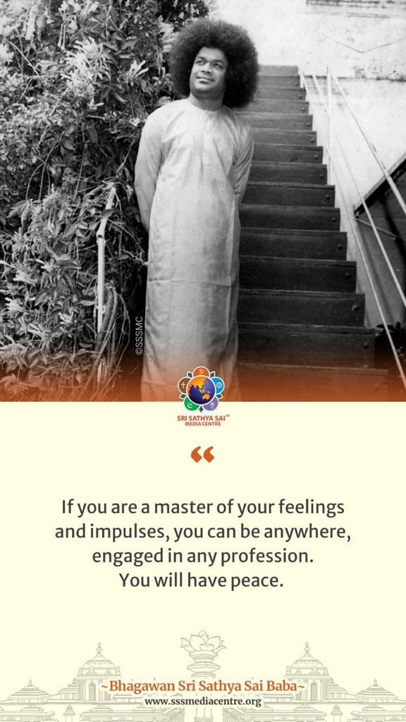 If you are a master of your feelings and impulses, you can be anywhere, engaged in any profession. You will have peace. – BABA