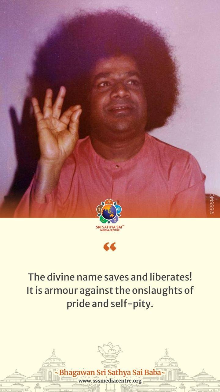 The divine name saves and liberates! It is armour against the onslaughts of pride and self-pity. – BABA
