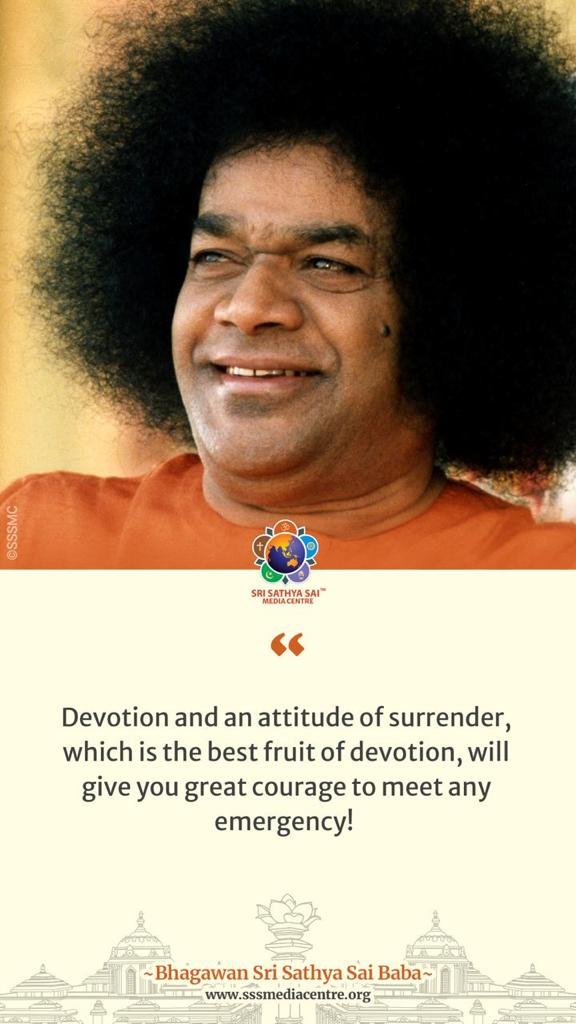 Devotion and an attitude of surrender, which is the best fruit of devotion, will give you great courage to meet any emergency! – BABA