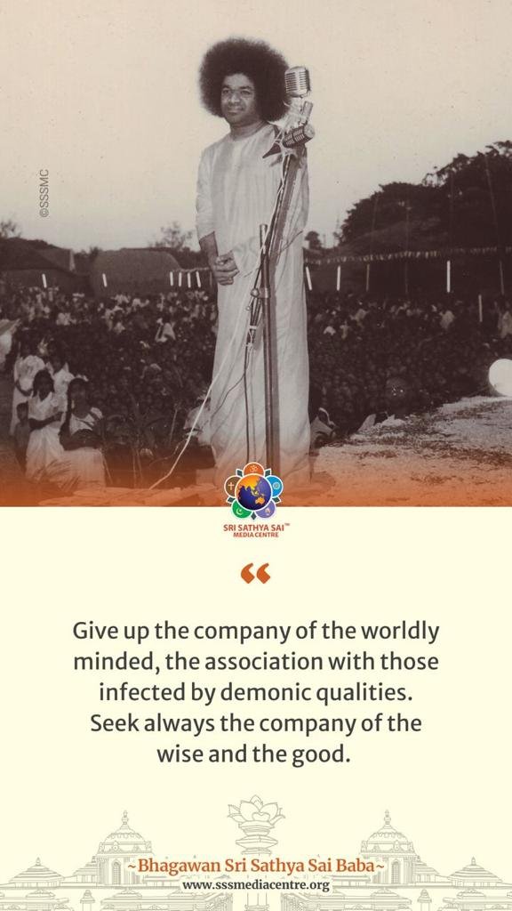 Give up the company of the worldly minded, the association with those infected by demonic qualities. Seek always the company of the wise and the good. – BABA