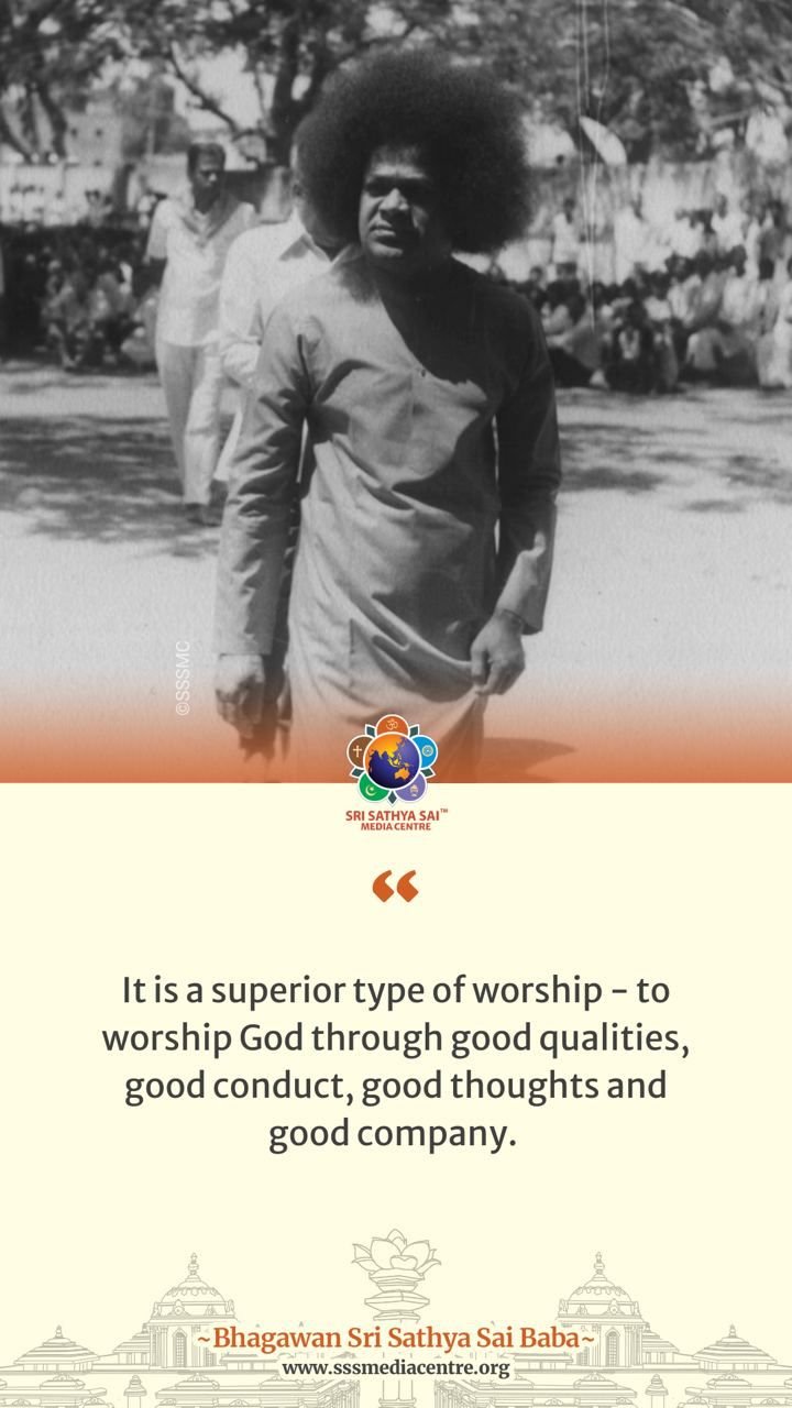 It is a superior type of worship – to worship God through good qualities, good conduct, good thoughts and good company. – BABA
