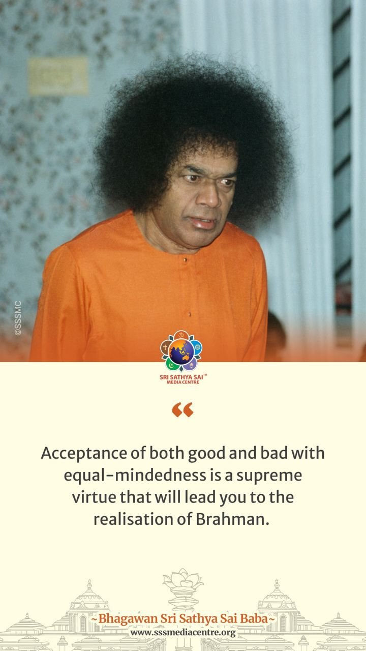 Acceptance of both good and bad with equal-mindedness is a supreme virtue that will lead you to the realisation of Brahman. – BABA