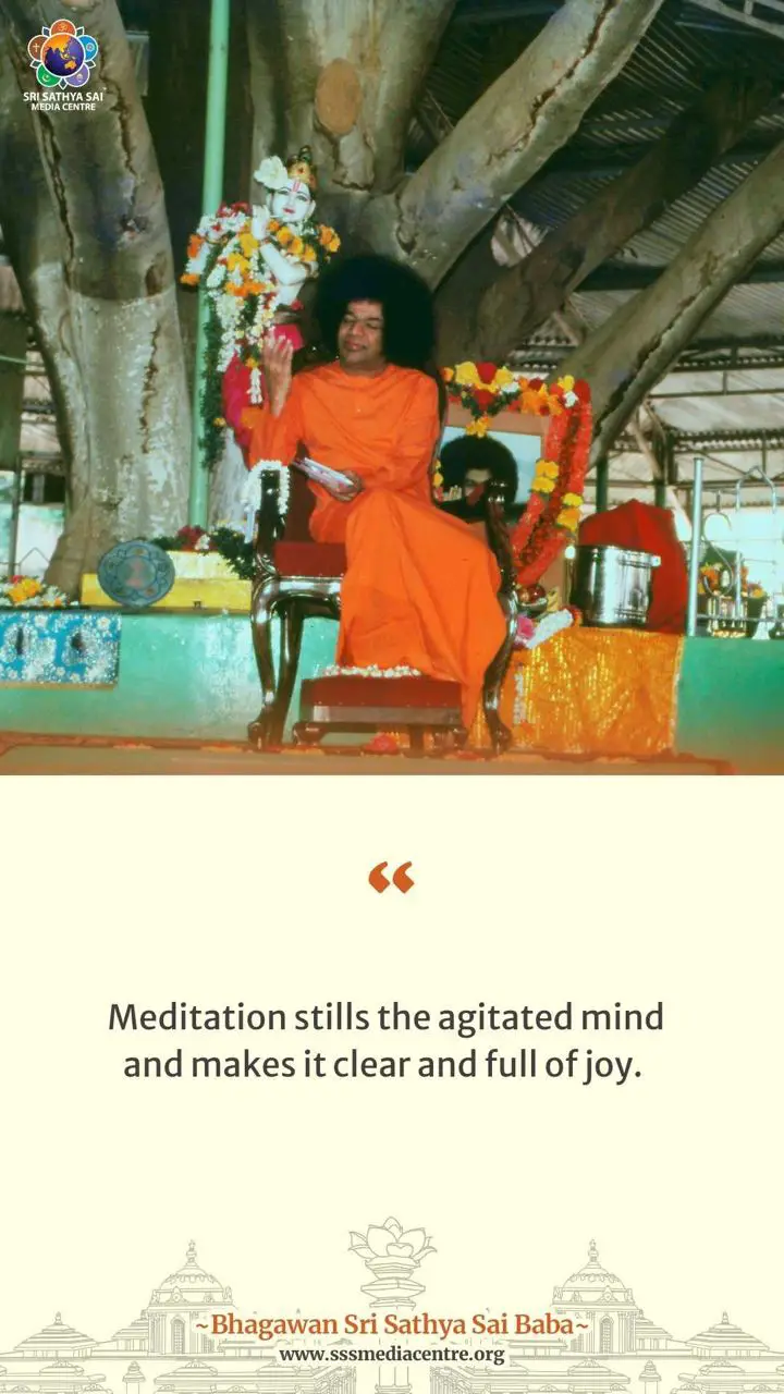 Many in this world, even among the learned, do not spend their allotted span of life in the pursuit of certain selected ideals. Hence, their earthly careers are like the voyage of a storm-tossed ship that has lost both its anchor and its compass, and is caught in mid-ocean. They are torn between opposing ideals and goals; they listen to diverse appeals, and their lives end in waste and failure, for they say one thing and do another in their ignorance and fear. Meditation gives them a fixity of purpose, courage, and also wisdom. The feelings that arise in the mind, which are classified as serene, restless, and ignorant (sattvic, rajasic, and tamasic), also have to be watched and cleansed. Restlessness and ignorance have to be uprooted. Meditation is the weapon for this task. The path of meditation (dhyana-marga) will destroy ignorance (ajnana), and it will grant the individual union with the Godhead (Brahmaikyata).